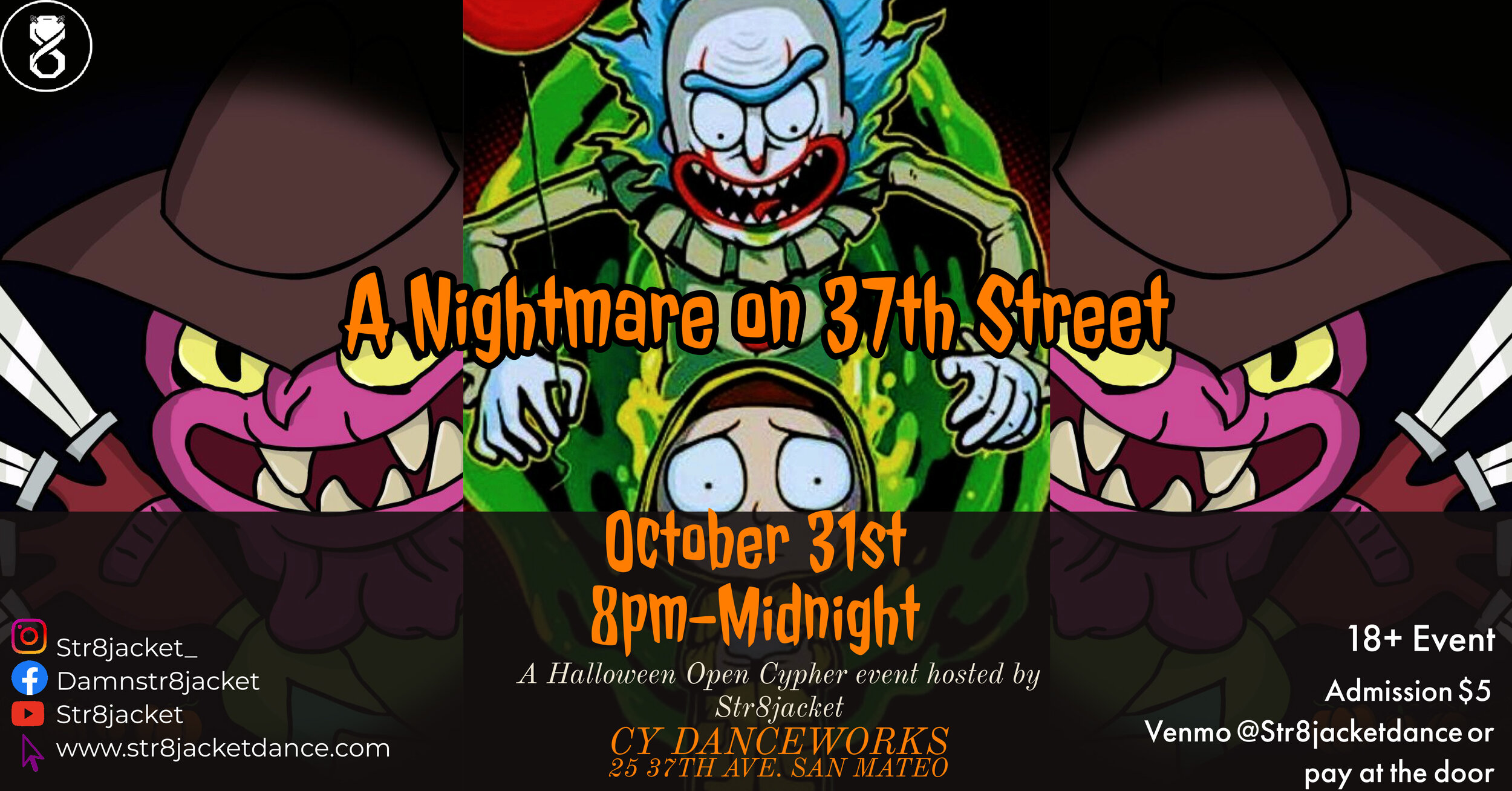 Calling all the monsters, b-boys, b-ghouls, and everyone in between! Trick or Treat yourself to a night of fun and fellowship at Str8jacket's 3rd Annual Halloween Event: A Nightmare on 37th Street ๐ป๐๐๐