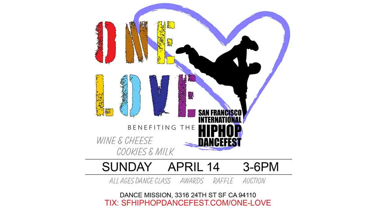 Sunday April 14, 2019 marks the third annual ONE LOVE, a fun-filled afternoon benefiting the San Francisco International Hip Hop DanceFest!